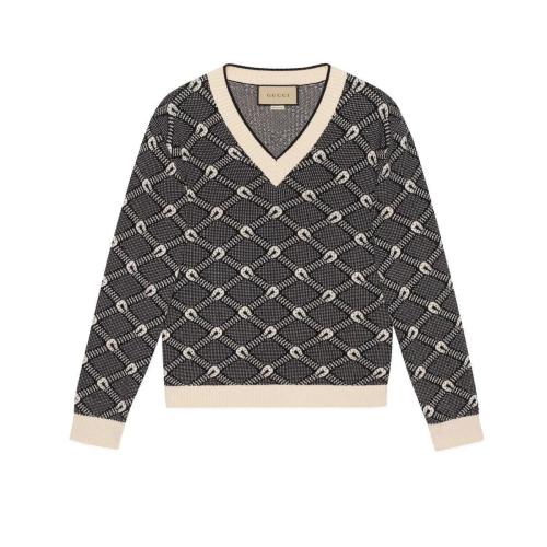GUCCI古驰 22年秋冬 男士 棉毛混纺提花毛衣 703112 XKCCW 1289
