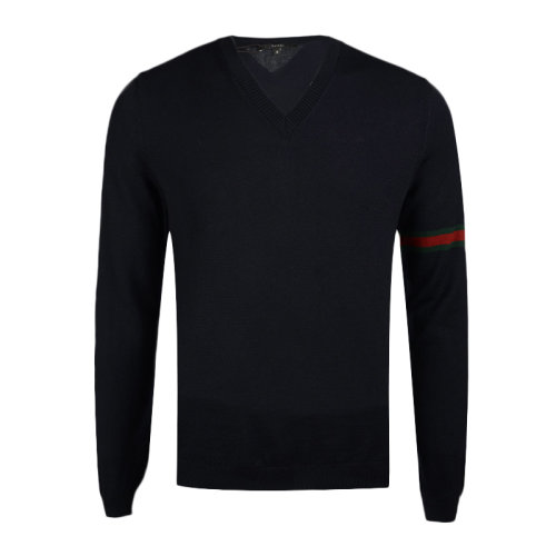 GUCCI 古驰 男士 服装 V领手臂经典条纹标志长袖羊毛毛衣 男士毛衣针织衫