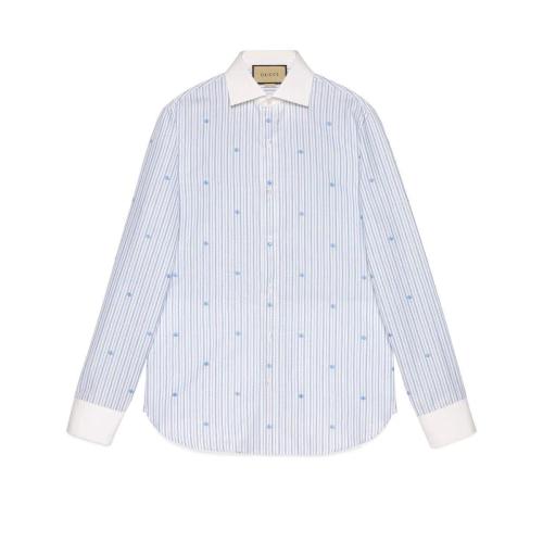 GUCCI古驰 22年秋冬 男士 饰刺绣条纹棉质衬衫 703396 ZAJTL 4482