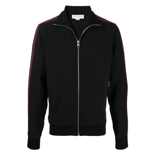 Alexander McQueen/亚历山大麦昆 男装 时尚简约 侧边字母logo织带 男士黑色立领夹克 625377QQR381000 HKY06107