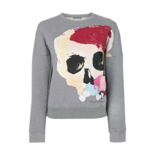 Alexander McQueen/亚历山大麦昆 女装 图案装饰 女士灰色棉质时尚圆领秋冬卫衣 507095QKZ130902