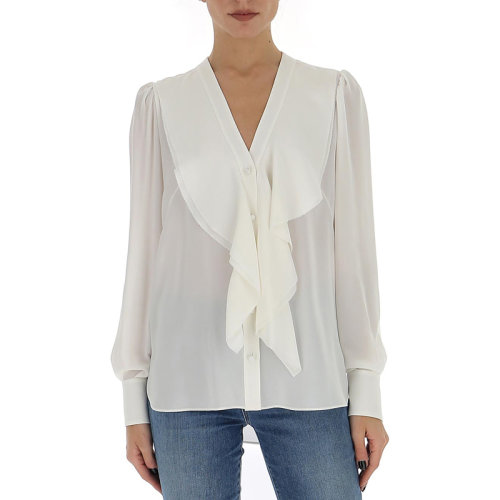 Alexander McQueen 亚历山大·麦昆 女士 服装 白色V领衬衫 女士长袖衬衫