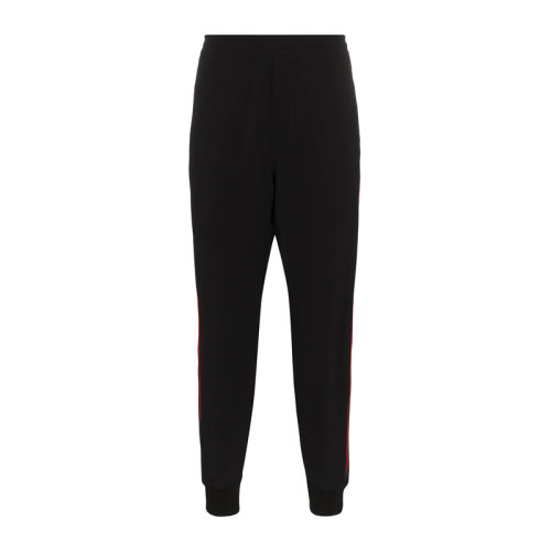 Alexander McQueen/亚历山大麦昆 男士黑色粘胶纤维条纹徽标罗纹松紧裤口长裤运动裤 595646-QOR39-1000