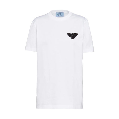 PRADA/普拉达 22年早春新款 女士黑白色亮片刺绣薄纱平纹针织棉质短袖T恤3579AR_1Z5N_F0964_S_221