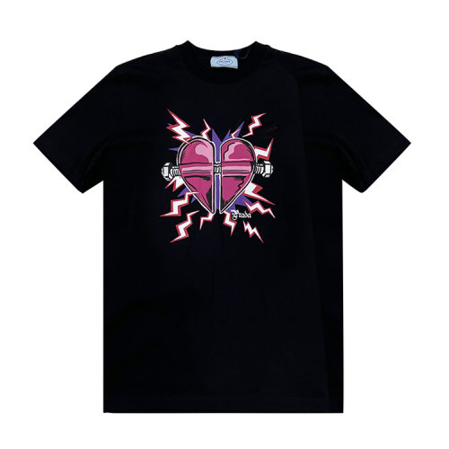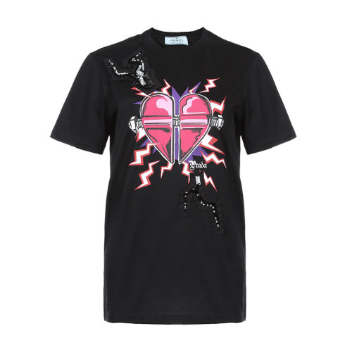 PRADA/普拉达 圆领 女性 印花 黑色 女士短袖T恤 35838.1U3F_D2P NERO+FUXIA