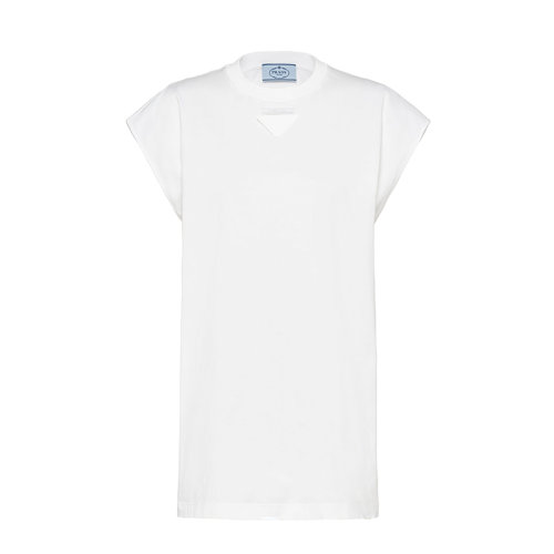 PRADA/普拉达 22年早春新款 女士白色大廓形平纹针织棉质短袖T恤3556A_1Y98_F0009_S_212