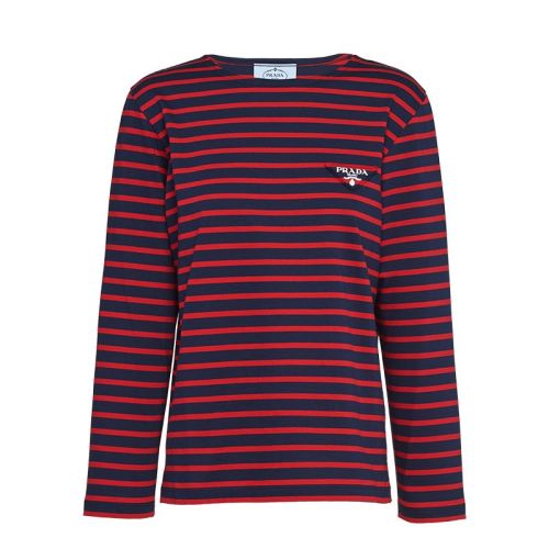 PRADA/普拉达 22年早春新款 女士红蓝色平纹针织条纹棉质长袖T恤34629_1045_F0E7D_S_221