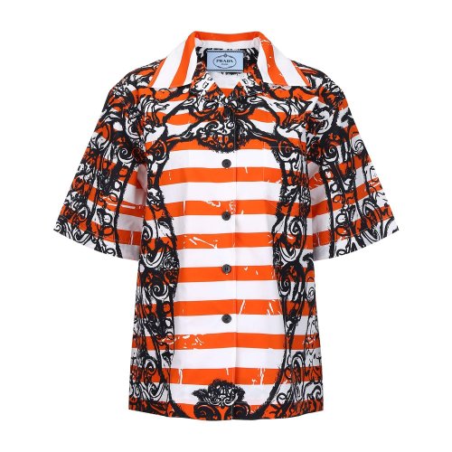 PRADA 混色 时尚印花 女士短袖衬衫 P433B 1SG5 F0049