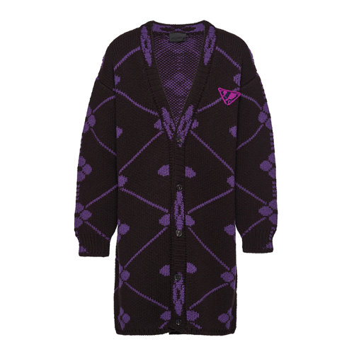 PRADA/普拉达 秋冬 男士乌木色/普鲁士蓝色设得兰羊毛提花开衫UMG092_1ZEM_F02GZ_S_212