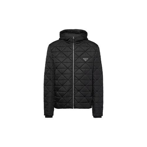 PRADA/普拉达 22年新款 男士黑色尼龙饰有金属三角标志拉链开合长袖连帽羽绒服外套SGB805_1WQ8_F0002_S_202