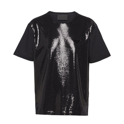 PRADA/普拉达 22年早春新款 男士黑色亮片装饰棉质短袖T恤UJN782_1Z5Y_F0002_S_221