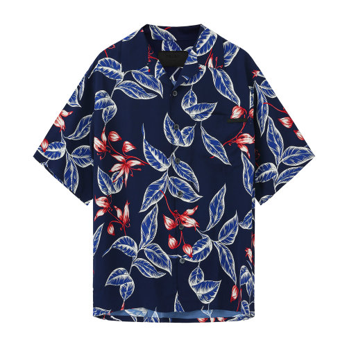 PRADA/普拉达 深蓝色 男士百合印花丝质短袖衬衫 UCS339_1VY4_F0008_S_201