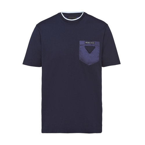 PRADA/普拉达 藏蓝色 男士华达呢尼龙口袋饰珠地棉短袖T恤 UJN616_1VT8_F0124_S_201