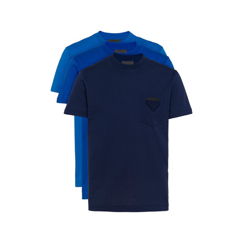PRADA/普拉达 22年早春新款 男士皇家蓝色/亮蓝色/淡蓝色棉质三件装T恤UJN677_1UOB_F00ZJ_S_202