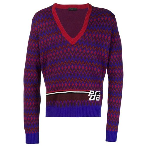 PRADA/普拉达 男性 V领 条纹 男士针织衫/毛衣 UMA861-S-182#1R87#F0030