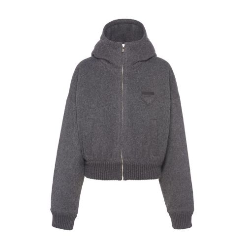 PRADA/普拉达 22年早春新款 女士板岩灰大廓形平纹针织羊绒连帽衫夹克138575_1ZCA_F0480_S_212