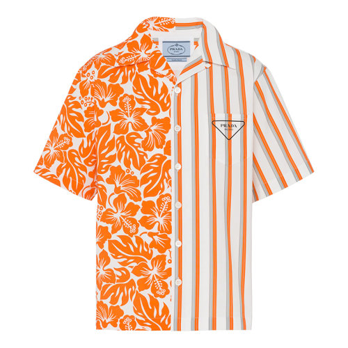 PRADA/普拉达 秋冬 Double Match系列 男士橙色芙蓉和条纹印花府绸短袖衬衫UCS406_1ZTE_F0049_S_212