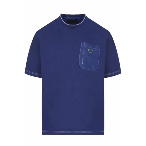 PRADA/普拉达经典三角形徽标男士棉质圆领短袖T恤 UJN790 10D3 S 221