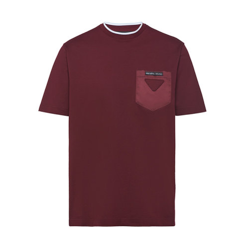 PRADA/普拉达 酒红色 男士华达呢尼龙口袋饰珠地棉短袖T恤 UJN616_1VT8_F0403_S_201