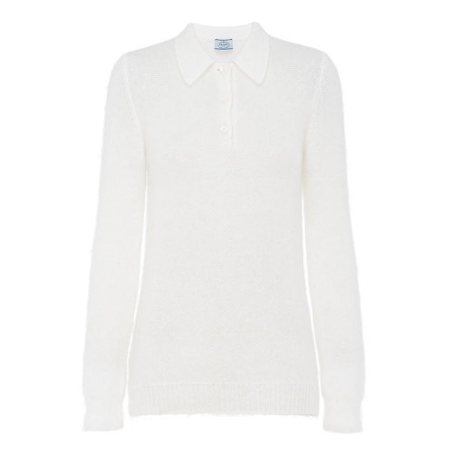 PRADA/普拉达 秋冬 女士白色修身马海毛长袖Polo衫P24L1I_1ZOJ_F0009_S_212