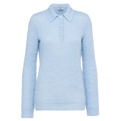 PRADA/普拉达 女士天蓝色修身马海毛长袖Polo衫P24L1I_1ZOJ_F0012_S_212