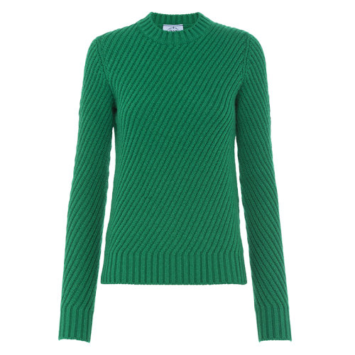 PRADA/普拉达 秋冬 女士翡翠绿羊绒斜罗纹圆领毛衣P24M1D_1ZZA_F077U_S_212