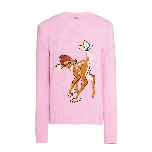 MiuMiu/缪缪 粉色 女士小鹿斑比卡通图案羔羊毛针织衫 MML287_AGR_F0028