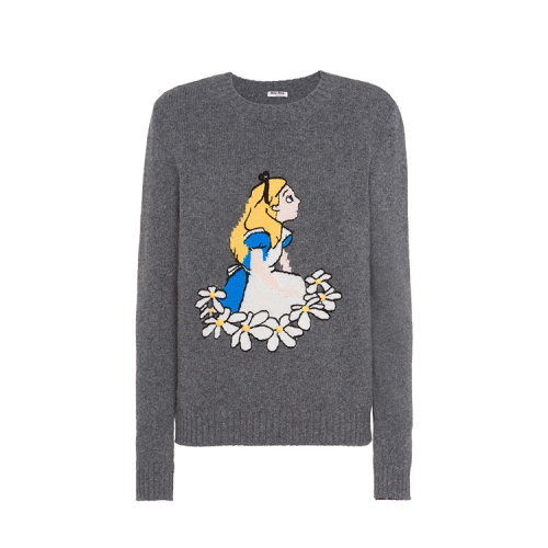 MiuMiu/缪缪 深灰色 女士爱丽丝卡通图案羔羊毛针织衫 MML288_AGR_F0480