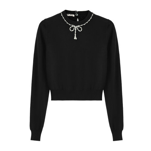 MiuMiu/缪缪 黑色 女士仿珍珠蝴蝶结装饰羊绒针织衫 MML293_1VWH_F0008