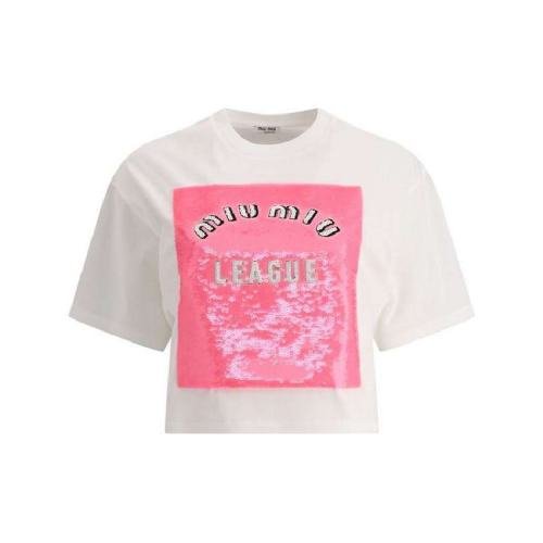 Miu Miu/缪缪 女士白色棉质短袖T恤 MJN237-1XE0-F0009 PLFSX