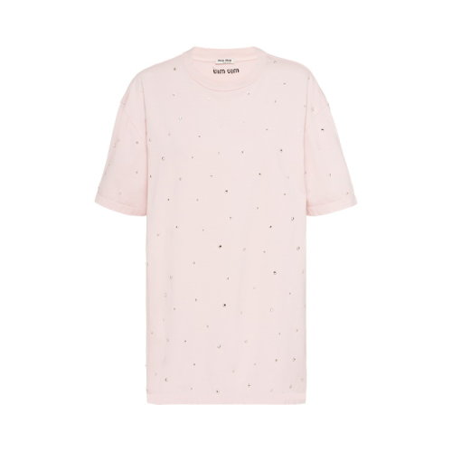 MiuMiu/缪缪 粉色 女士仿水晶装饰短袖T恤 MJN179_1WA2_F0028