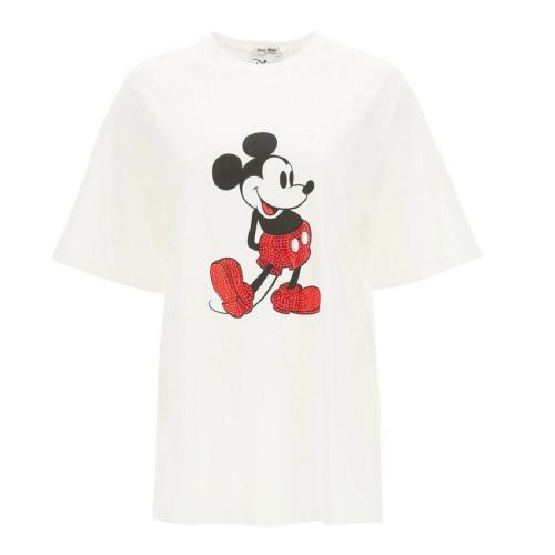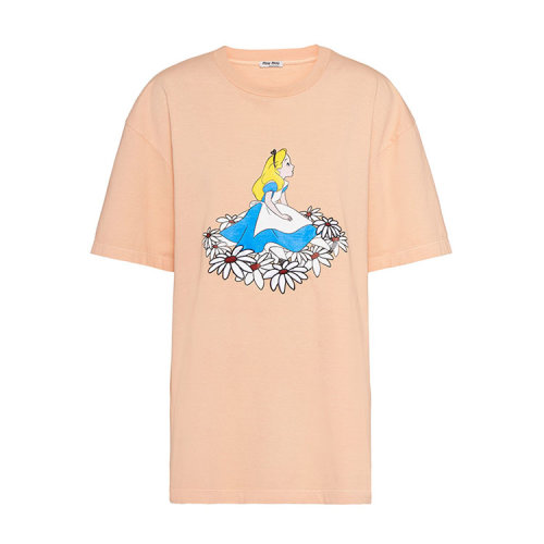 MiuMiu/缪缪 杏色 女士卡通图案印花短袖T恤 MJN195_1WHU_F0075