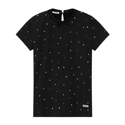 MiuMiu/缪缪 黑色 女士通体仿珍珠装饰短袖T恤 MJN174_1V0F_F0002