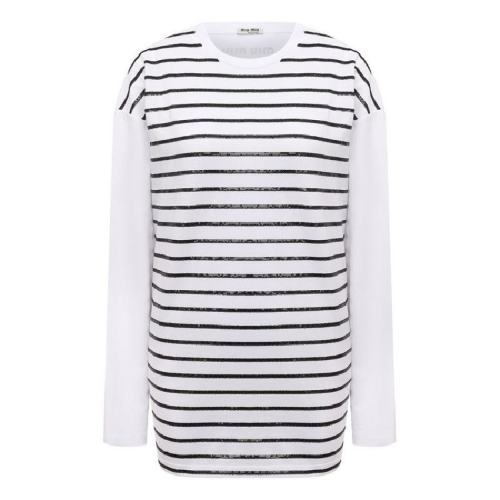 Miu Miu/缪缪 女士白色棉质长袖T恤 MJL803-1Z5B F0009 PLFSX
