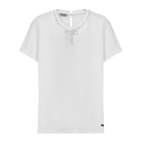 MiuMiu/缪缪 白色 女士蝴蝶结装饰短袖T恤 MJN175_1V0F_F0009