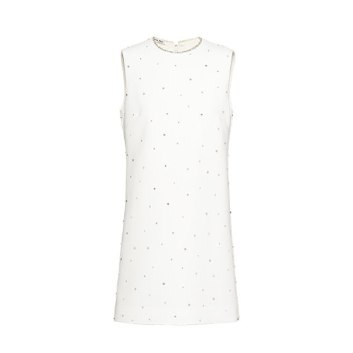 MiuMiu/缪缪 白色 女士仿水晶装饰罗缎卡迪连衣裙 MF3558_1V7C_F0K74