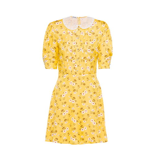 MiuMiu/缪缪 黄色 女士通体缎面提花娃娃领连衣裙 MF3584_1V9B_F0388