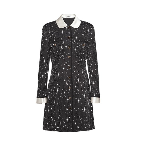 MiuMiu/缪缪 黑色 女士通体星星缎面提花娃娃领连衣裙 MF3559_1V7D_F0002