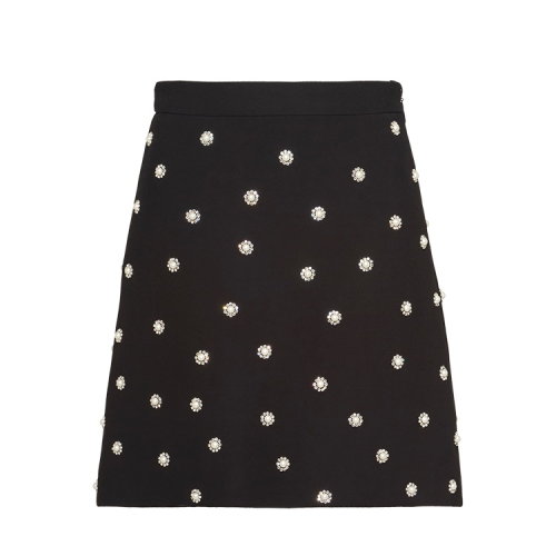 MiuMiu/缪缪 黑色 女士仿水晶装饰半身裙 MG1348_1DDD_F0002