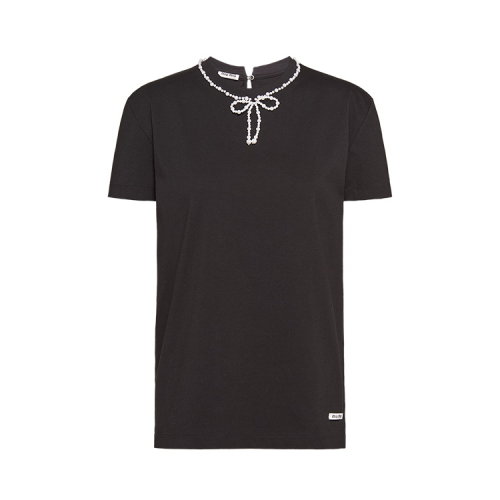 MiuMiu/缪缪 黑色 女士蝴蝶结装饰短袖T恤 MJN175_1V0F_F0002