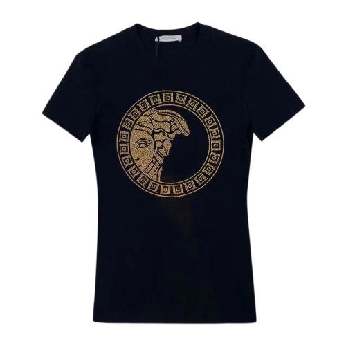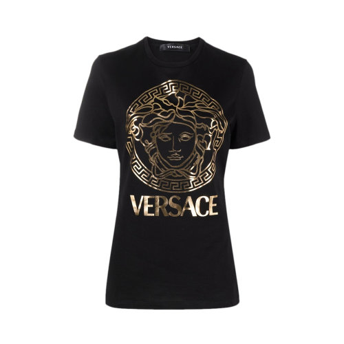 VERSACE/范思哲 女士黑色棉质经典美杜莎头像装饰圆领上衣短袖T恤 A82241-A232123-A1008
