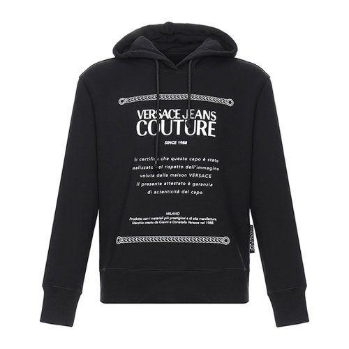 VERSACE JEANS/范思哲牛仔 男士黑色棉质经典字母徽标印花装饰长袖上衣卫衣连帽衫运动衫套头衫 B7GVA7X6-30312-899