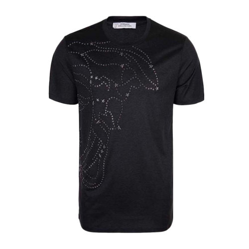 VERSACE/范思哲 男士深灰色棉质经典美杜莎头像装饰圆领短袖上衣T恤 V800683-VJ00295-V7023