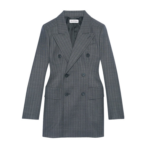 Balenciaga/巴黎世家 22年早春新款 HOURGLASS系列 女士灰色威尔士格纹羊毛休闲外套西装571279TGT151240