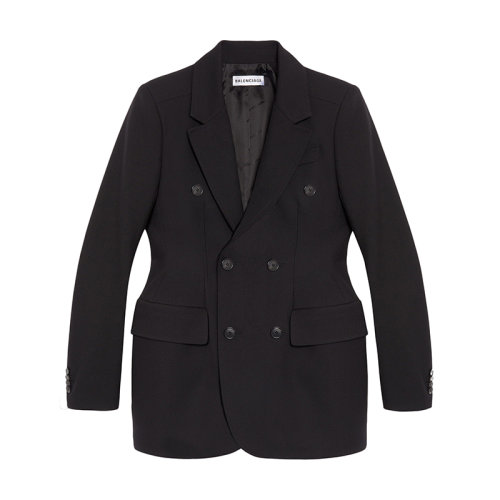 Balenciaga/巴黎世家 22年早春新款 Hourglass系列 女士黑色羊毛斜纹布夹克571278TYI201000