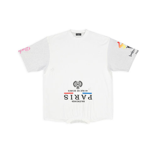 Balenciaga/巴黎世家 22年秋冬新款 男士白色纯棉倒转图案印花Oversized T恤698811TMVC99000