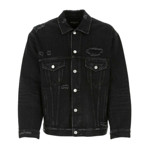 Balenciaga/巴黎世家 男士黑色棉质复古仿旧牛仔尖领上衣外套夹克 664329-TBP47-1055