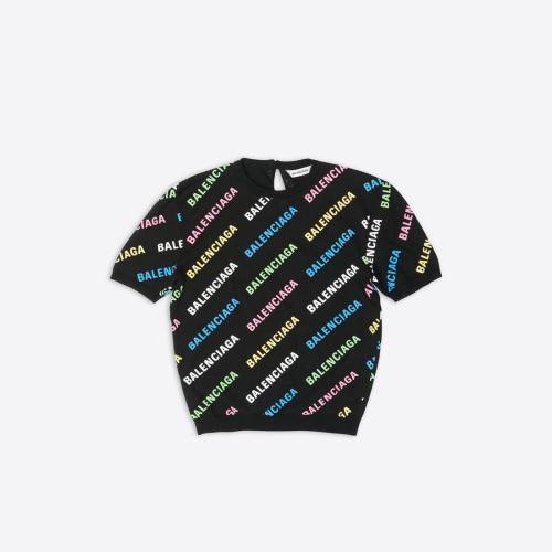 BALENCIAGA巴黎世家 22年秋冬 女士 短袖T恤 满印标识CROP短袖针织衫 695449T32342771