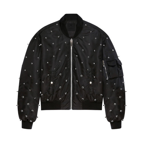 Givenchy/纪梵希 22年秋冬新款 女士黑色/银色尼龙饰有通体珍珠水晶刺绣拉链开合长袖飞行员夹克BW00HGE40V-008