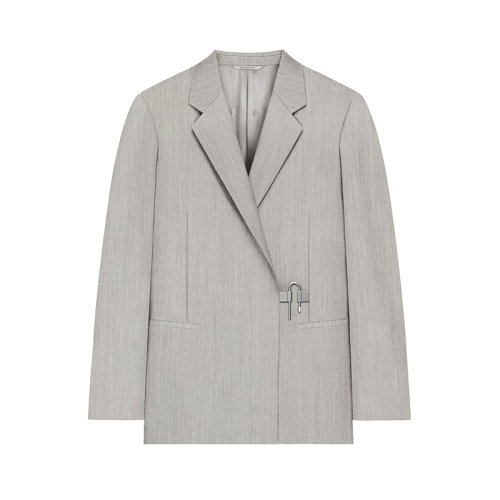 Givenchy/纪梵希 22年早春新款 女士浅灰色羊毛海马毛混纺饰挂锁修身西装外套BW30D713ZA-055